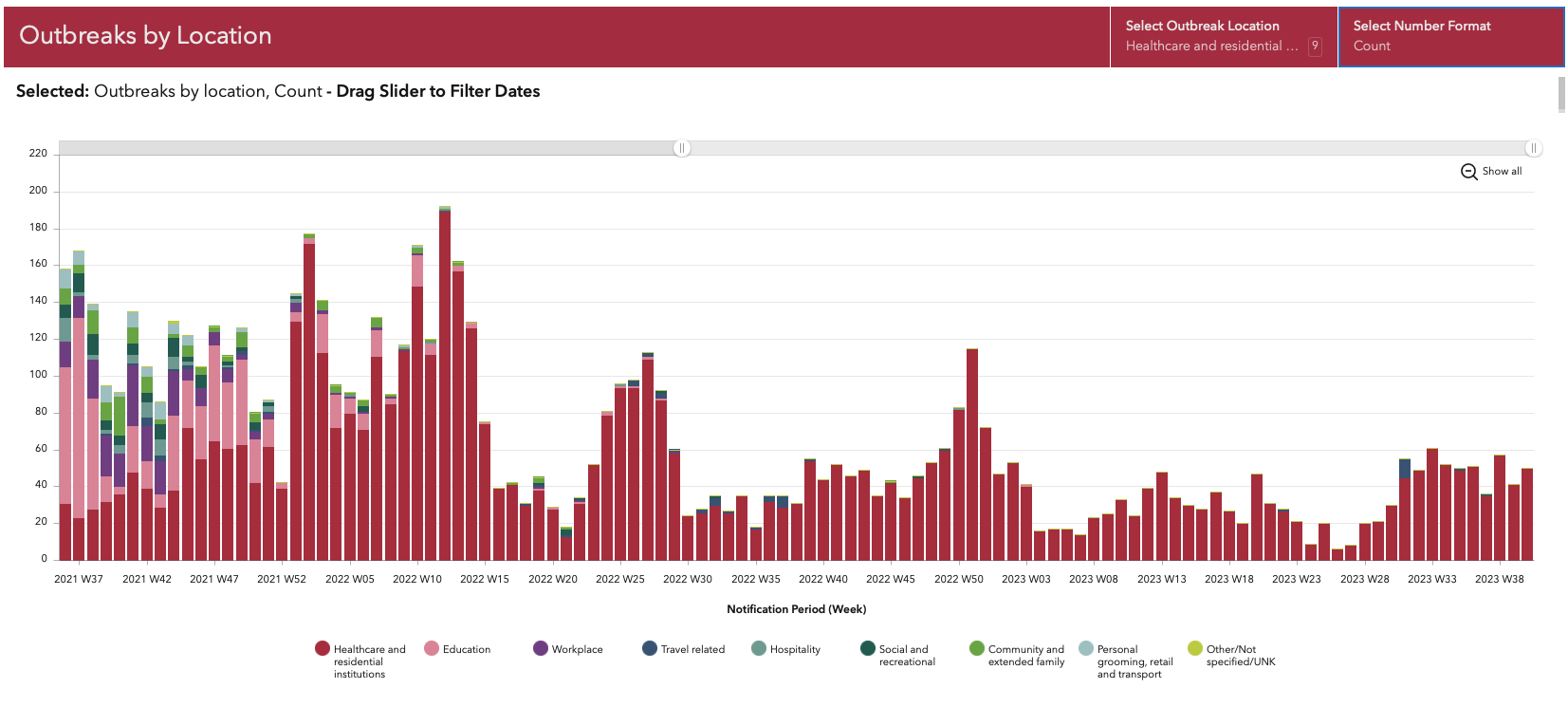 Flus and respiratory illnesses are more common in colder months as people are indoors more often and viruses can pass more easily from one person to the next. Healthcare settings such as hospitals and nursing homes are particularly prey to this spread as can be seen from the latest Health Protection Surveillance Centre (HPSC) profile of COVID outbreaks by location, showing the Healthcare institutions are where Covid is circulating most.